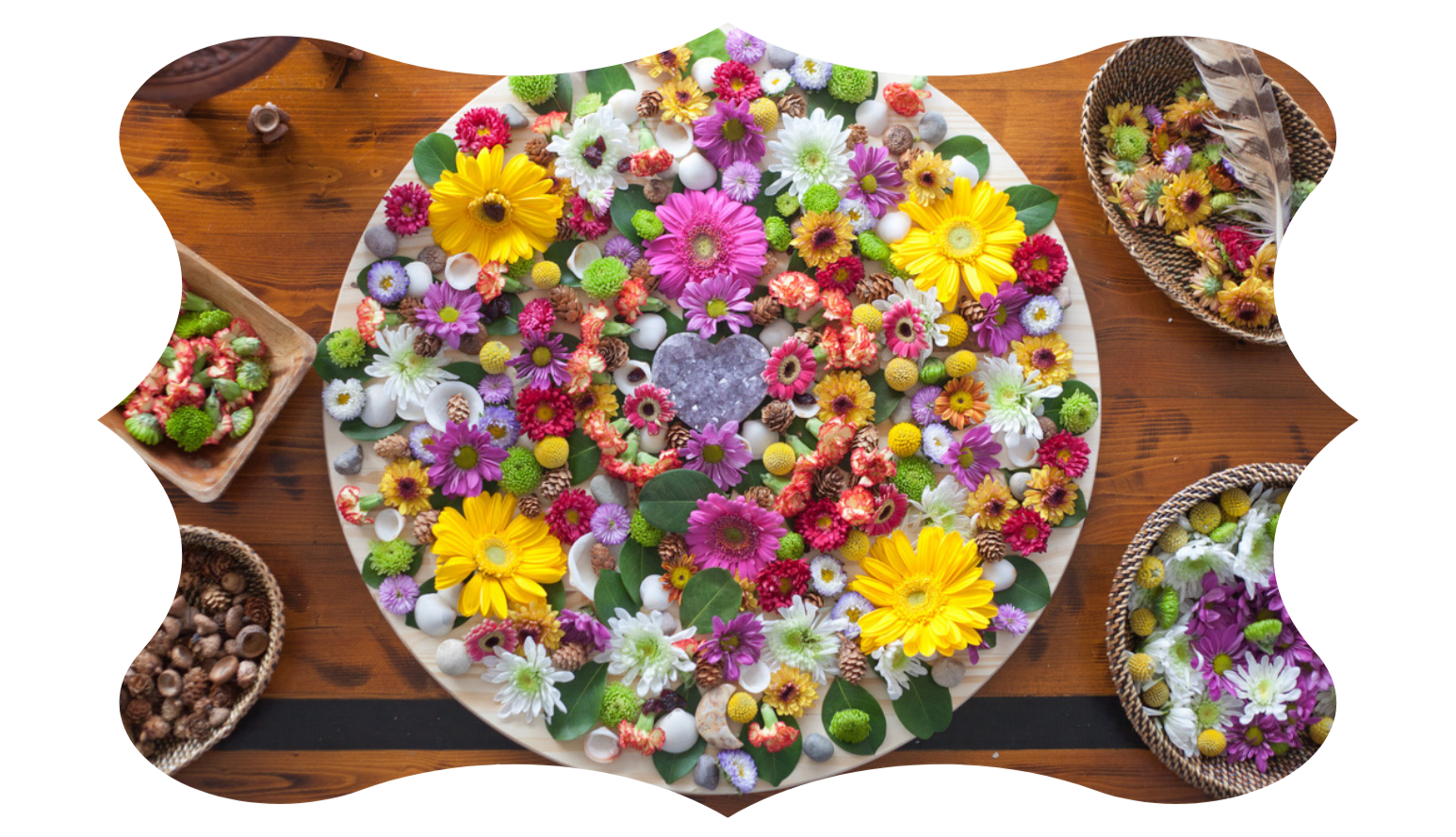 Earth Mandala Altar created together with flowers and foraged elements.